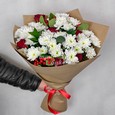 Букет из кустовых роз и хризантем