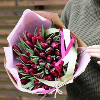 101 розовый тюльпан в крафте