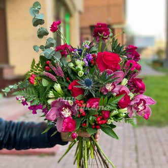 Букет из кустовых роз и орхидей