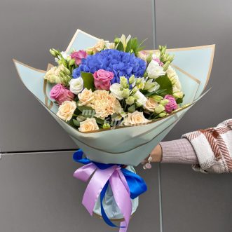 Букет из синей гортензии и эустом