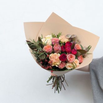 Букет из роз и диантуса