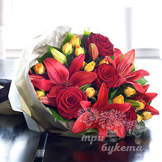 Букет из красных лилий и роз 5030 ₽