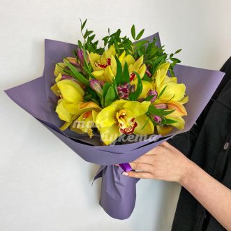 Желтые орхидеи с альстромериями 4410 ₽