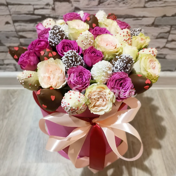 21 клубника с розами в коробке
