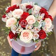Белые и розовые пионы в коробке