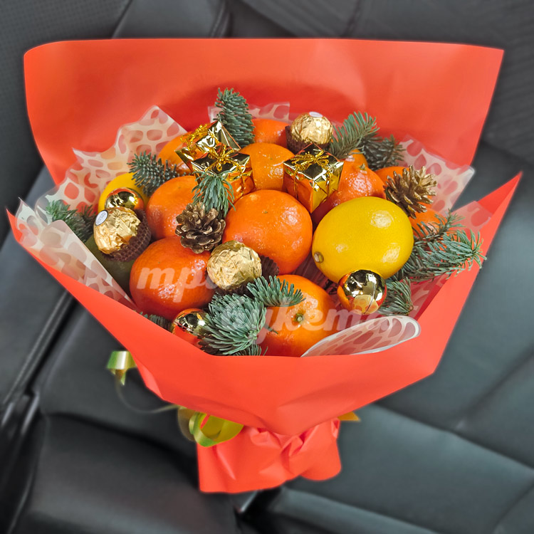 Букет апельсинов и новогодний декор