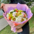 Букет гербер, хризантем и гипсофилы