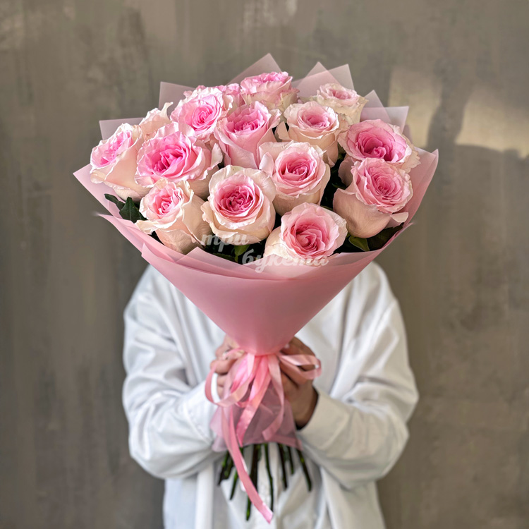 Букет из 15 розовых пионовидных роз