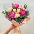 Букет из 3 розовых пионов в крафте