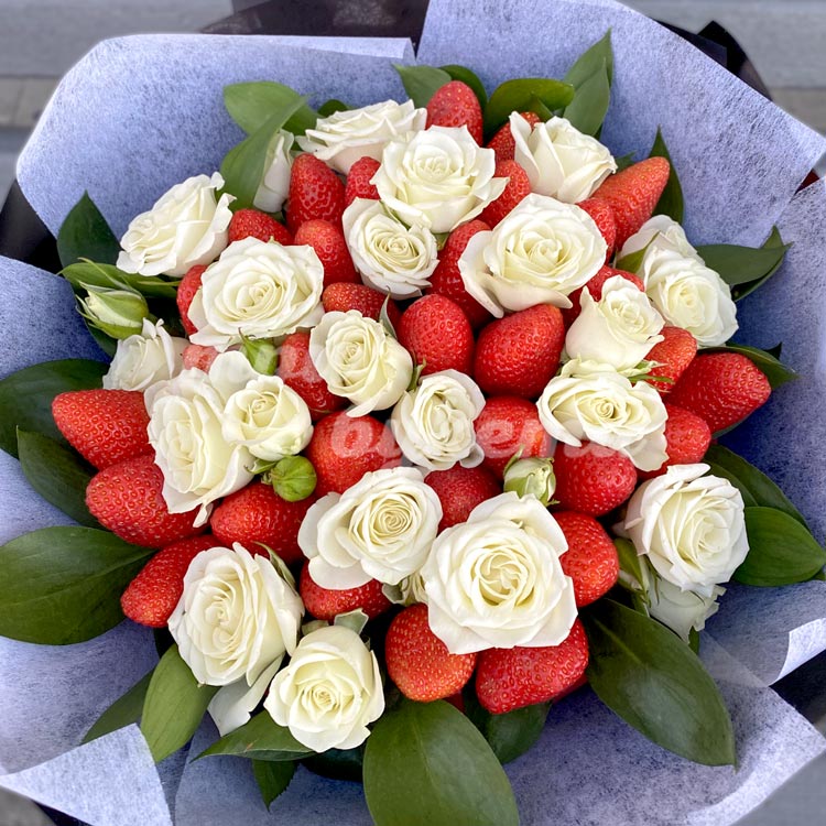 Букет из 33 клубник в белых розах