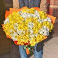 Букет из красных хризантем и зелени