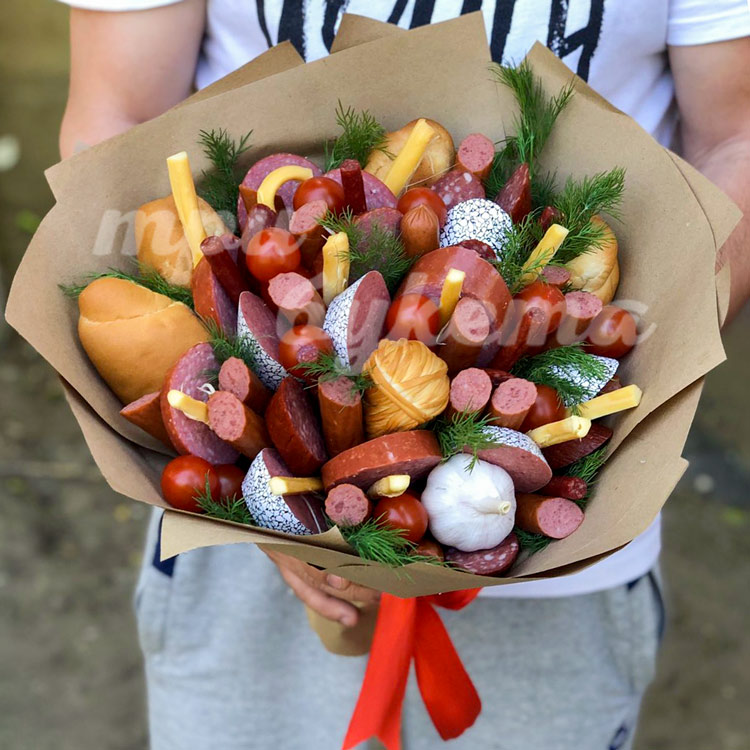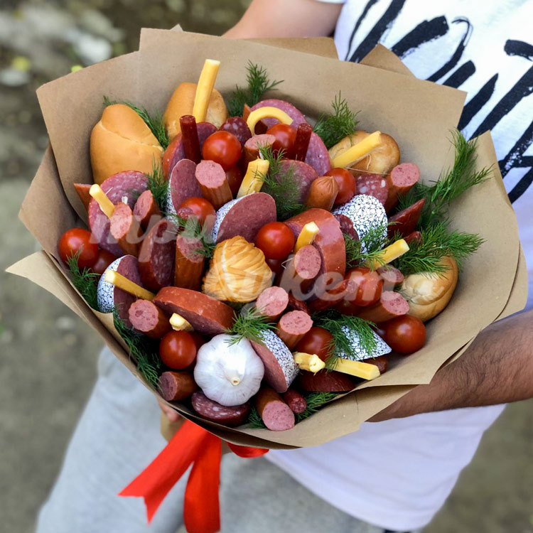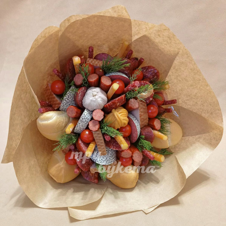 Букет из нарезанной колбасы в крафте