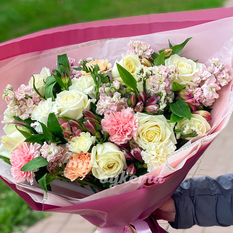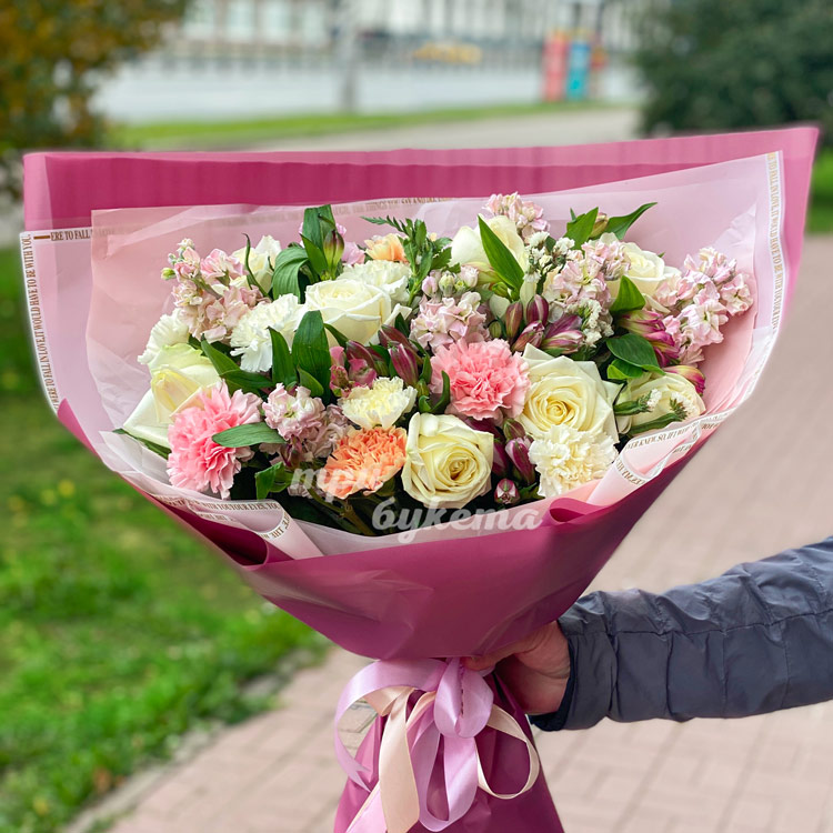 Букет из роз и альстромерий