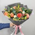 Букет из розовых роз и альстромерий