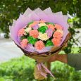 Букет зеленых роз и белых хризантем
