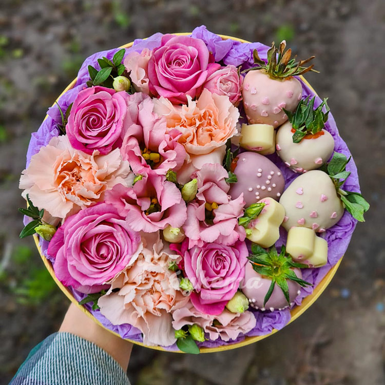 Комп. цветов с клубникой в шоколаде