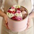 Коробка конфет, роз и эустом