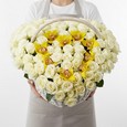Коробка-сердце из хризантем и роз