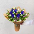 Коробка желтых французских роз с тюльпанами