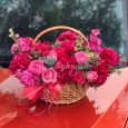 Корзина синих гортензий и роз