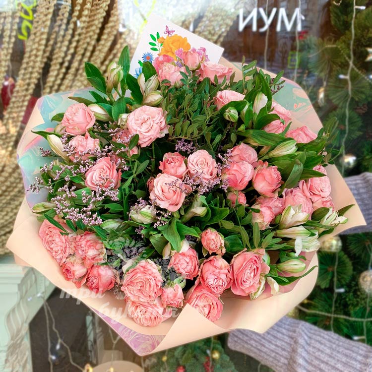 Кустовые розы и альстромерии