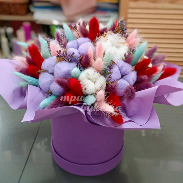 Лаванда и лагурус в коробке