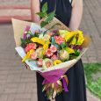 Набор из мягкой игрушки, конфет и 15 белых роз