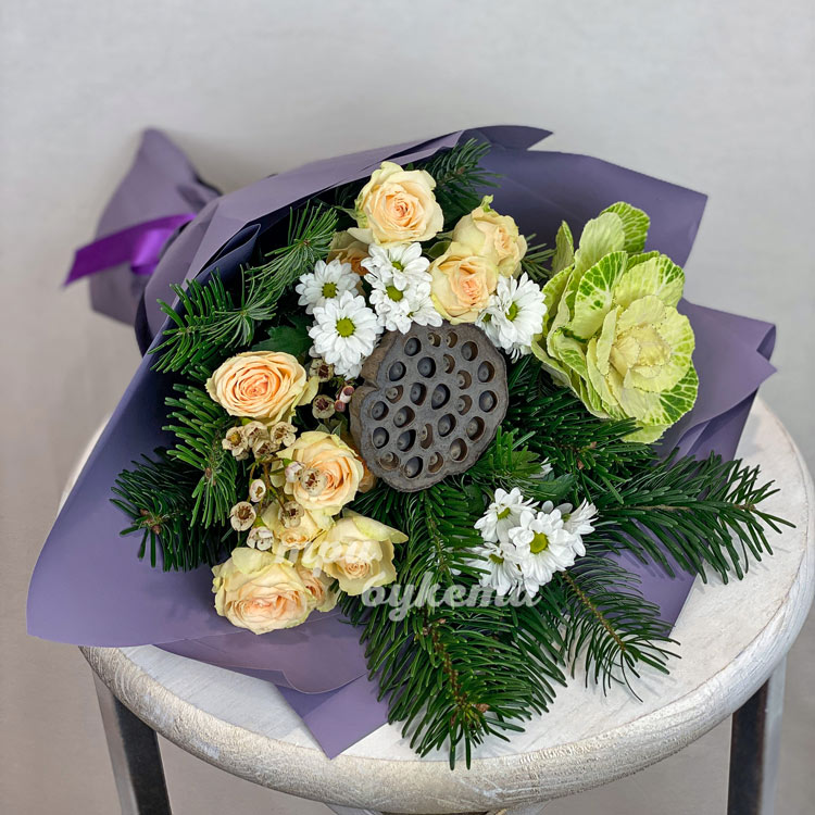 Новогодний букет из лотоса и роз