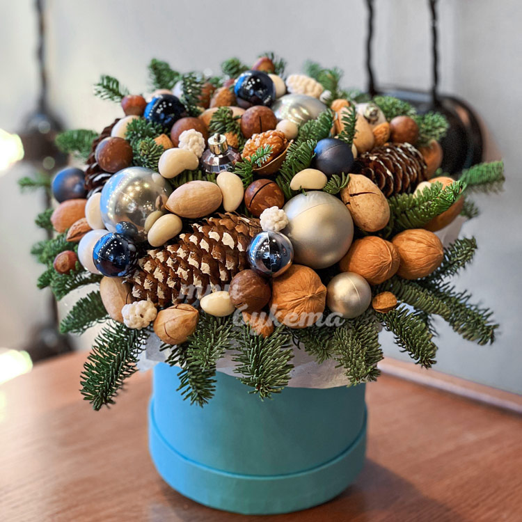 Орешки и шары в новогодней коробке