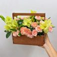 Пионы и розы с макарунами в коробке