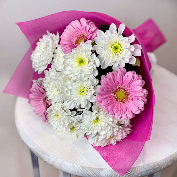 Розово-белый небольшой букет гербер