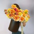 Яркие розы на 8 марта в шляпной коробке